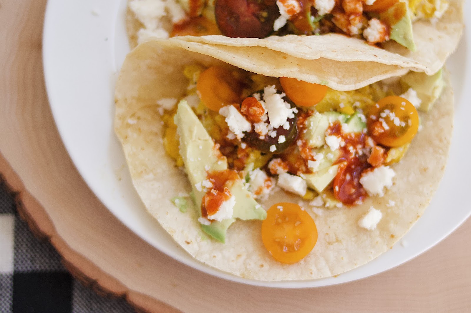 Honestly, if it wasn't for Andrew I would probably forget to eat the majority of the time. And on most days you can see him in the kitchen making most of our family meals. When I cook, I want it to be fast, delicious, and good for me. This dish checks off all those boxes (and if you are vegan, you can easy make a tofu scramble and do dairy free cheese). The tomatoes add a brightness and sweetness to the dish that compliments well with the quest fresco. For extra kick, I add Tapatio and it's exactly what it needs to finish out strong. Also, there are avocados- who can say no to avocados? Hope you enjoy!